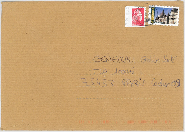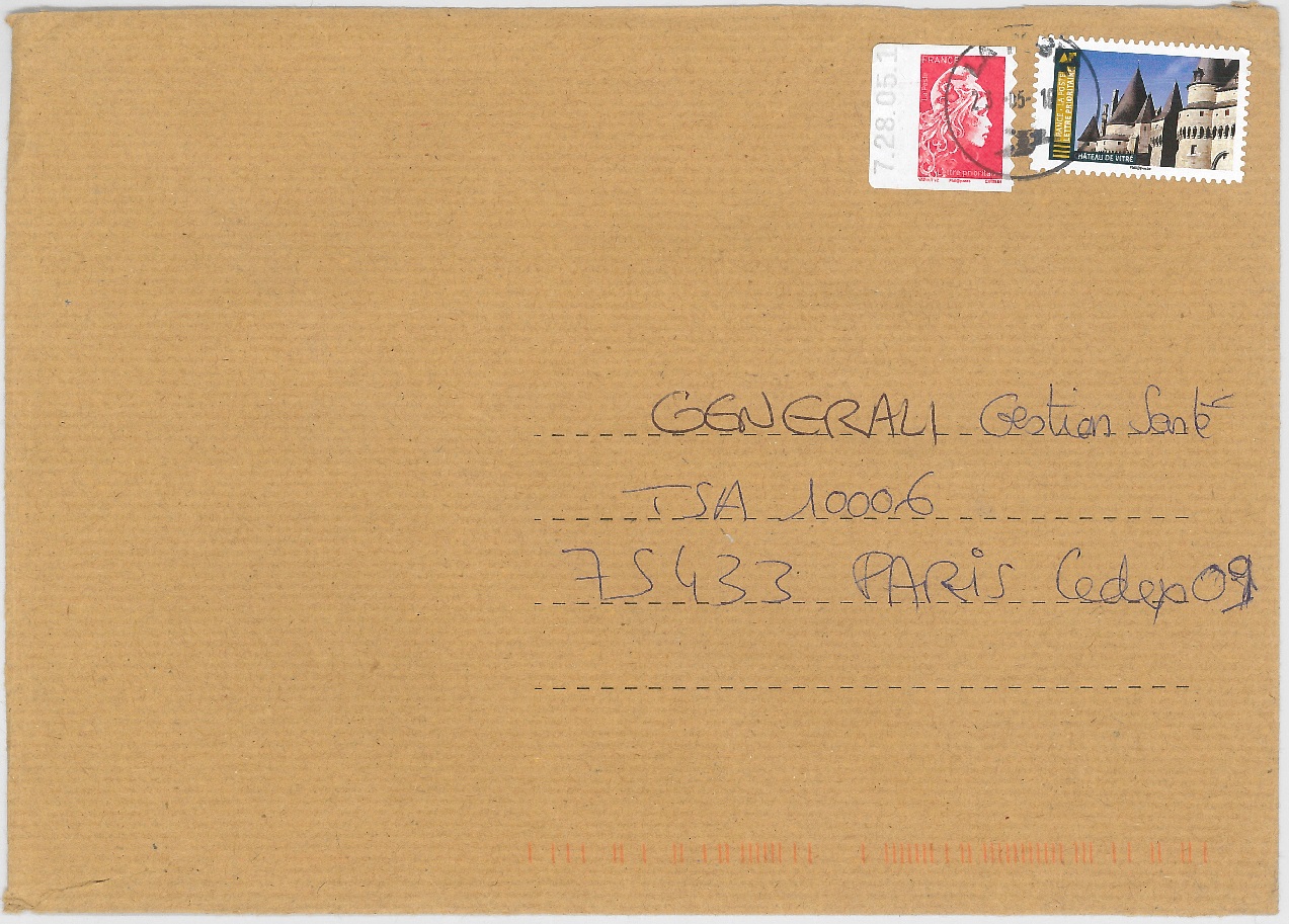 - affranchissement mixte avec un timbre de carnet SAGEM associé à un timbre de roulette gommée.